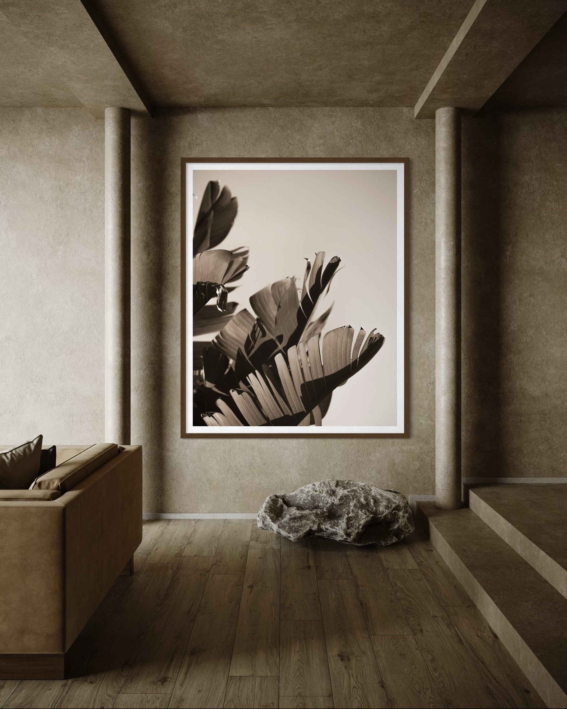 Where Days Drift captures the quiet poetry of late light moving across tropical leaves. Soft shadows stretch across the elegant forms, creating a gentle rhythm of shape and shade. The composition holds the warmth of an unhurried afternoon- a moment where the world slows and time drifts softly forward.
